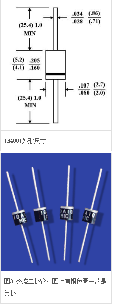 整流二极管是利用PN结的单向导电特性,把交流电变成脉动直流电。整流二极管漏电流较大,多数采用面接触性料封装的二极管。整流二极管的外形如图3所示,另外,整流二极管的参数除前面介绍的几个外,还有最大整流电流,是指整流二极管长时间的工作所允许通过的最大电流值。它是整流二极管的主要参数,是选项用整流二极管的主要依据。